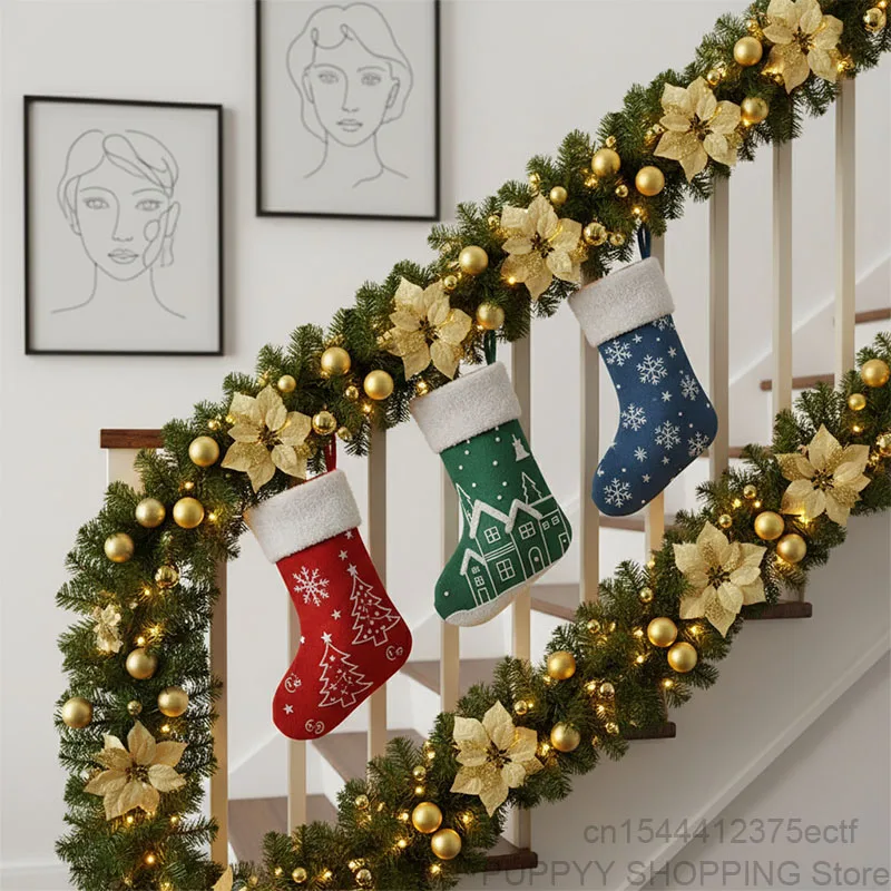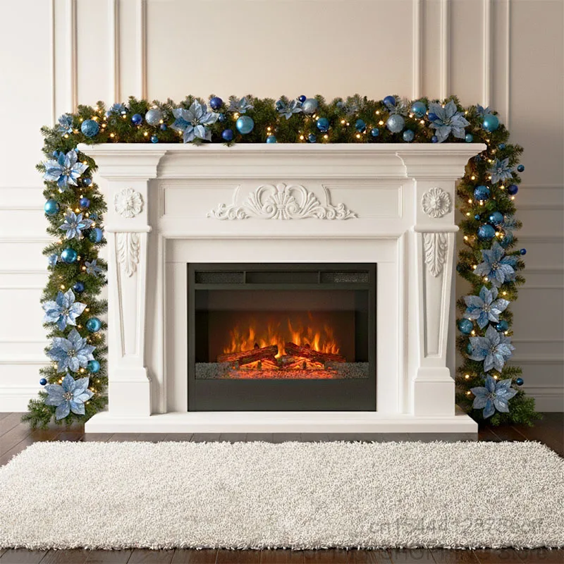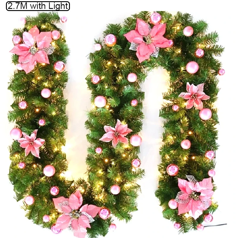 Christmas Garland Decorations, 2.7M Staircase Fireplace Christmas Garland Ornament, Xmas Tree Fireplaces Wreath, Home Decoration