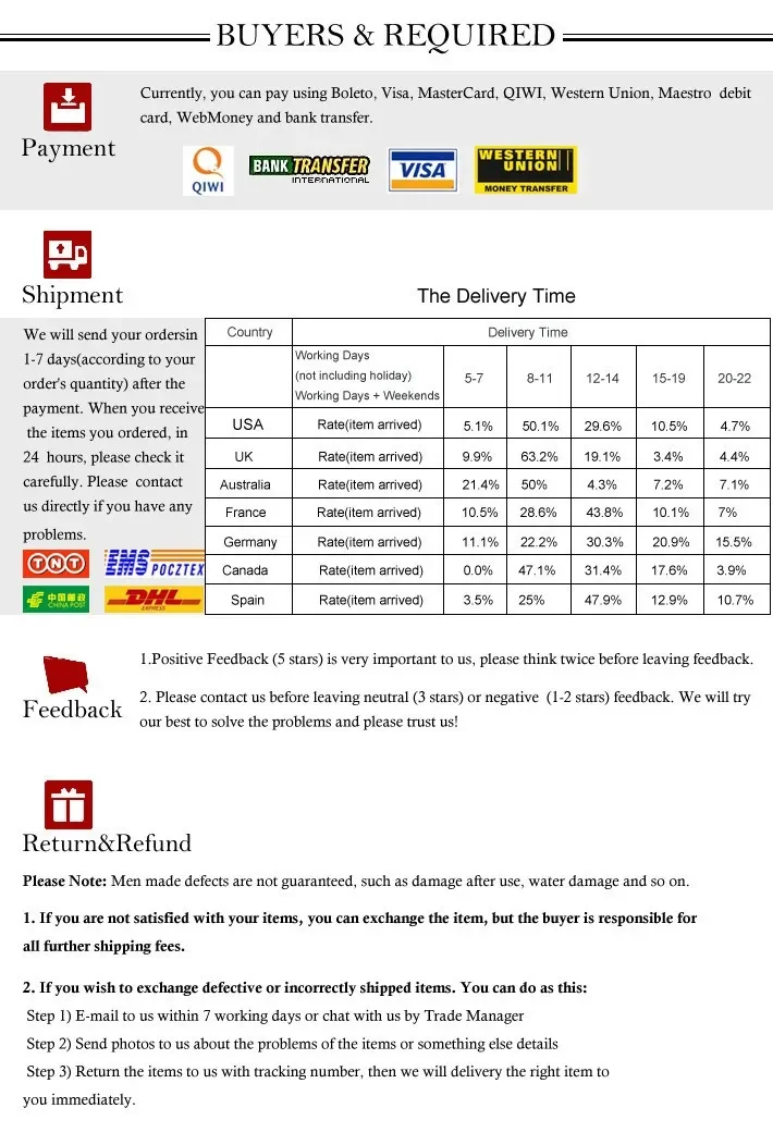 If the package does not arrive within the promised time, we will make full refund. (the promised time is subject to the payment page)