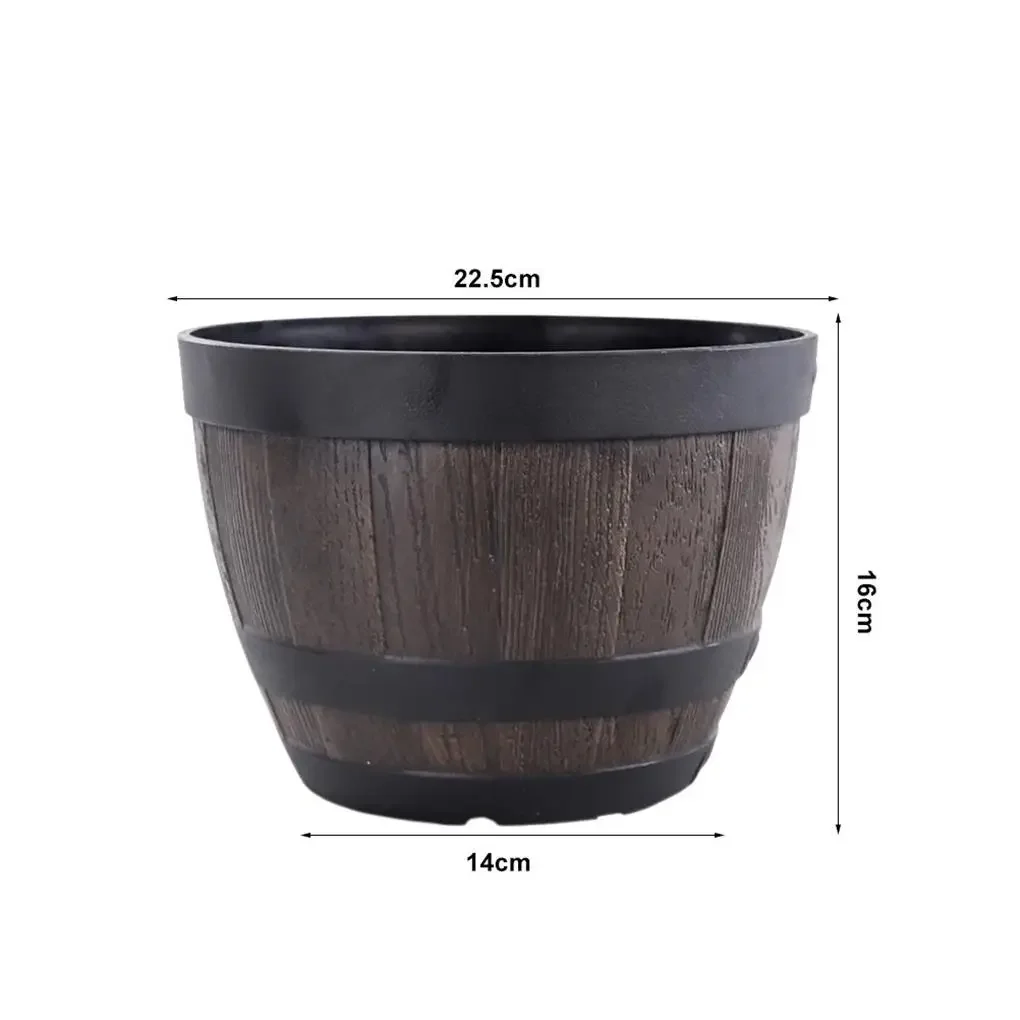 Vintage Farmhouse-Style 9-Inch Resin Barrel Planter for Home and Outdoor Use